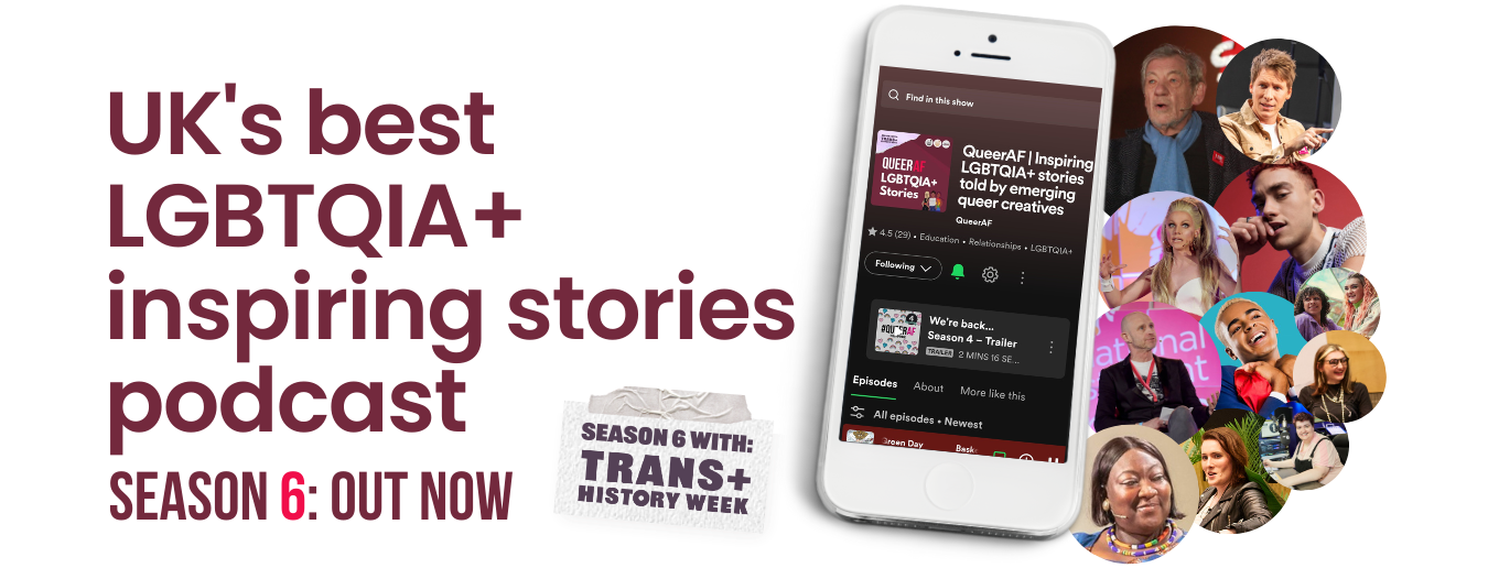 Listen now to QueerAF | Inspiring LGBTQIA+ stories told by emerging queer creatives podcast