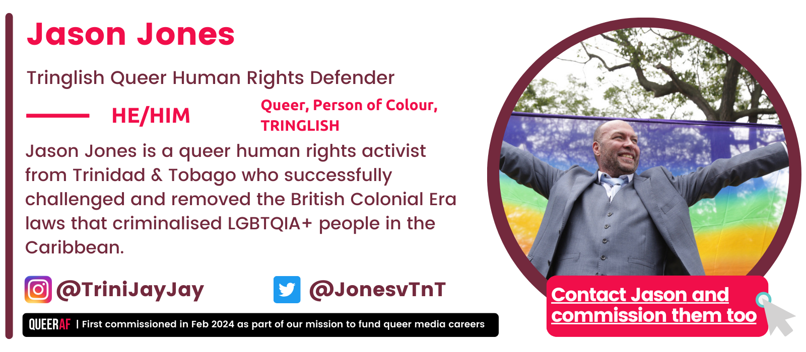 Jason Jones is a Queer human rights activist from Trinidad & Tobago who successfully challenged and removed the British Colonial Era laws that criminalised LGBTQ+ people in the Caribbean - and this October, he’s QueerAF's UK Black History Month guest editor.