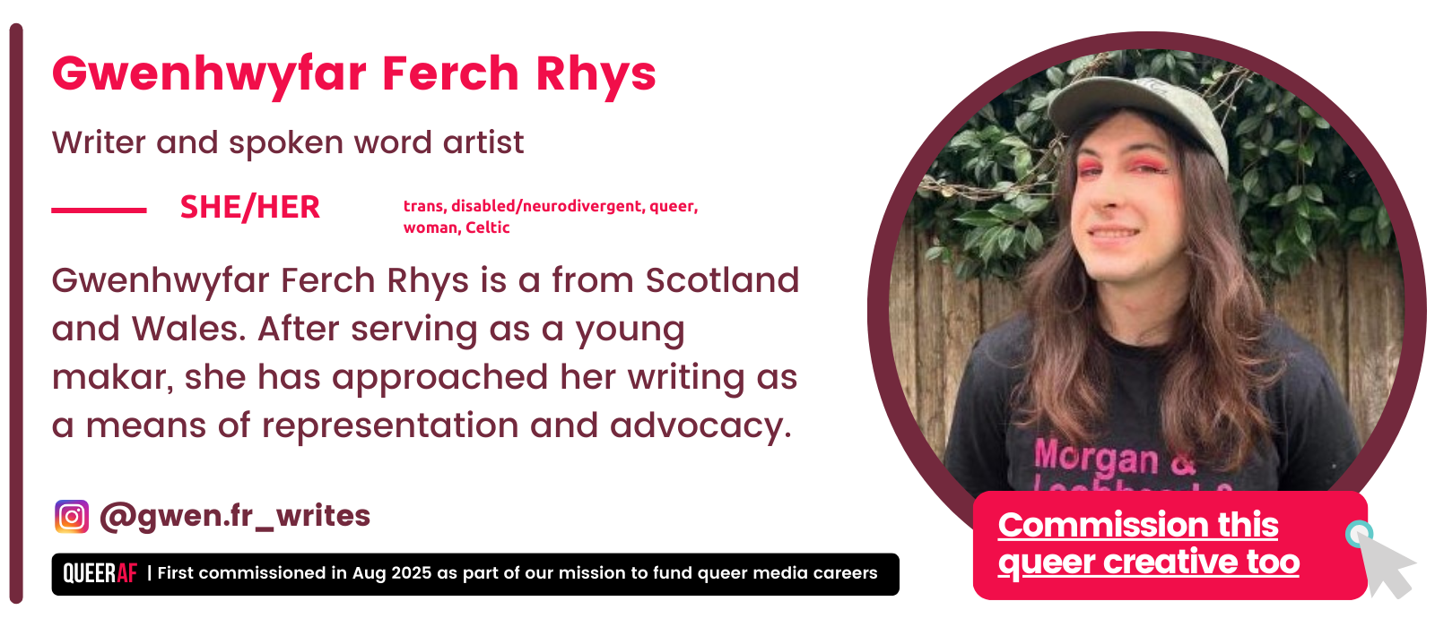 The Queer Gaze is a space in the QueerAF newsletter to commission emerging and underrepresented queer creatives to get published, receive mentorship, and kickstart your career.