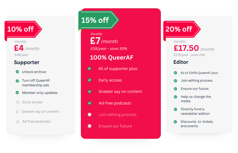 - 15% off '100% QueerAF': Monthly / Annual