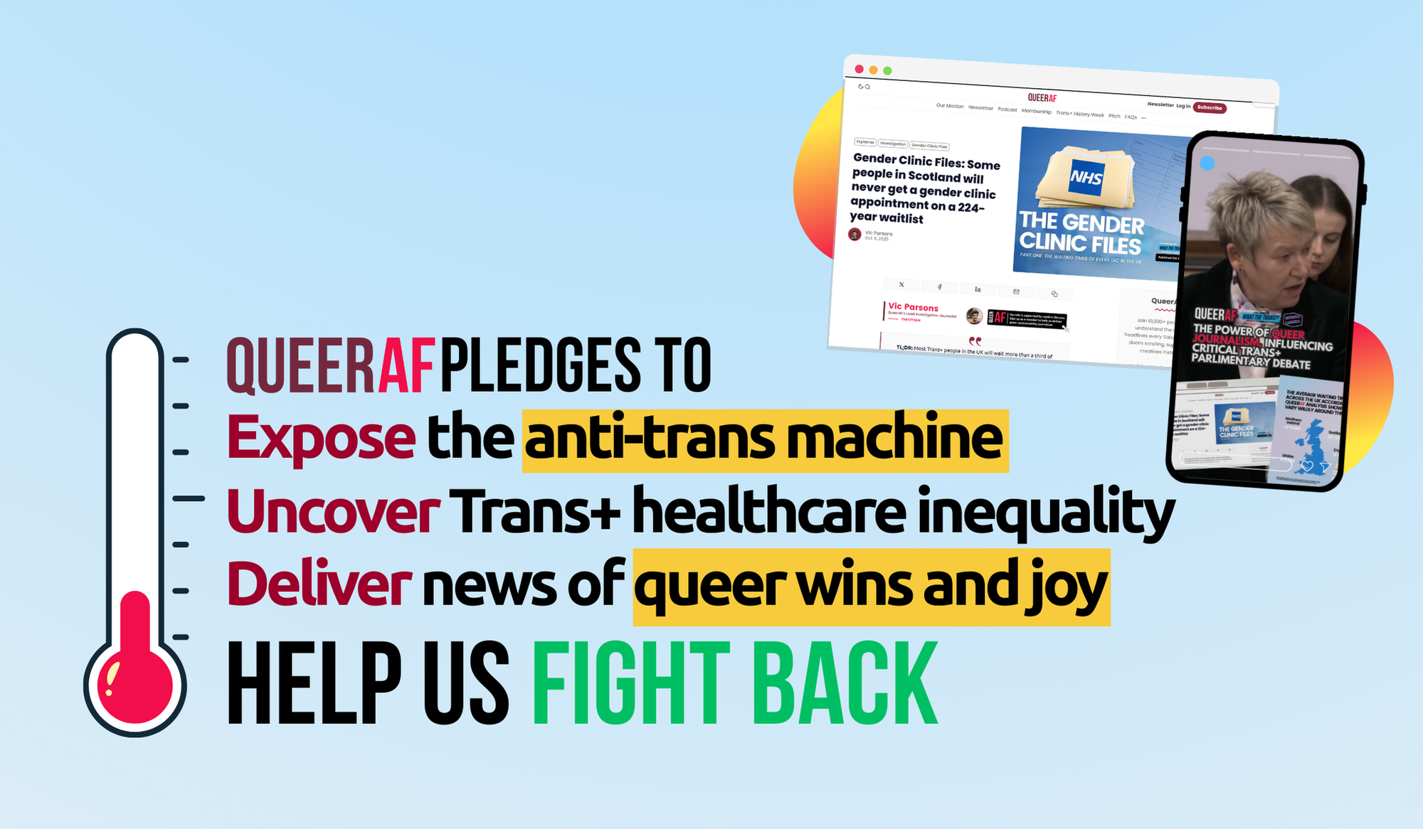 As we land in your inbox today, after four years of delivering queer accountability journalism—holding government, the NHS and anti-trans movements to account—More than 10,000 of you are here with us, to get everything you need to fight back.