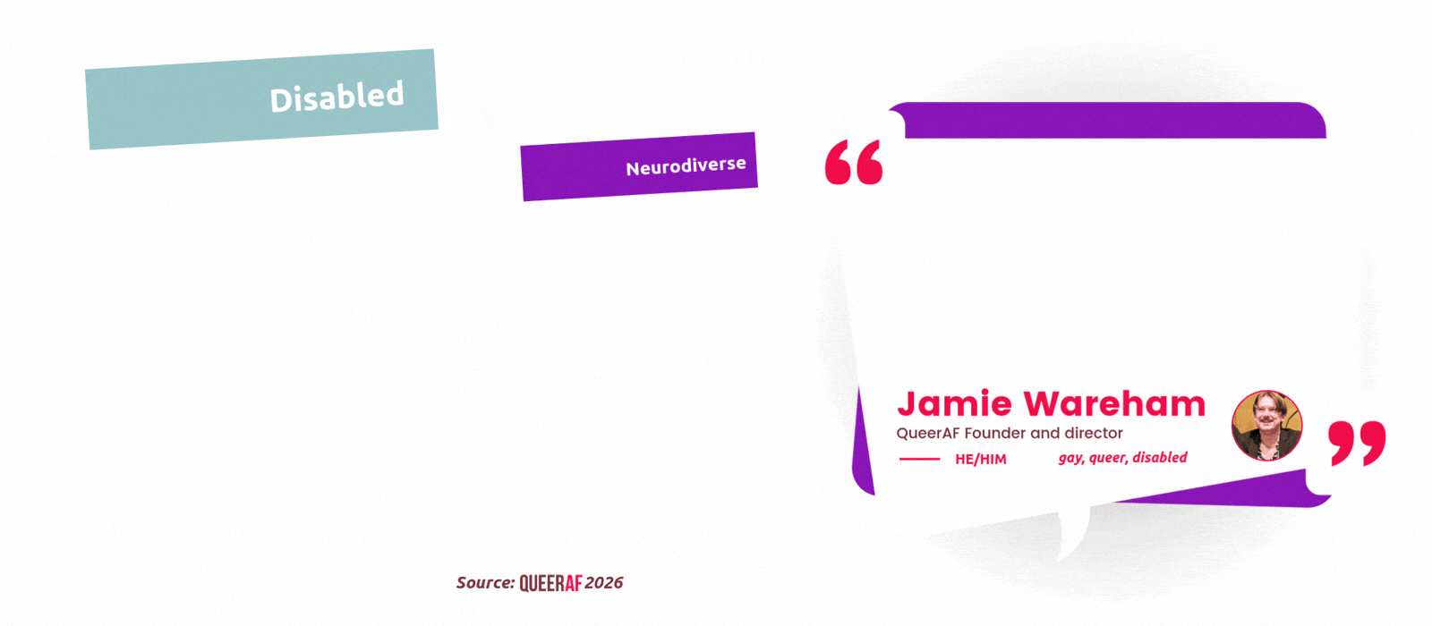 At QueerAF we double that number. Four in ten (42%) of our contributors are disabled, have a chronic illness or are neurodivergent.