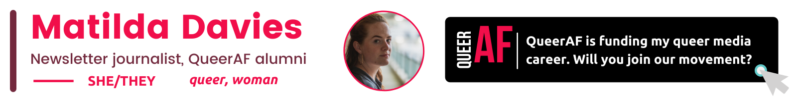 Hi! I'm Matilda - as you may have noticed, your newsletter is coming to you from a different voice today. Jamie has taken the week off for some annual leave, so I'm here to bring you your weekly dose of LGBTQIA+ news. I was the first creative QueerAF commisioned since we was recently set up as a CIC.